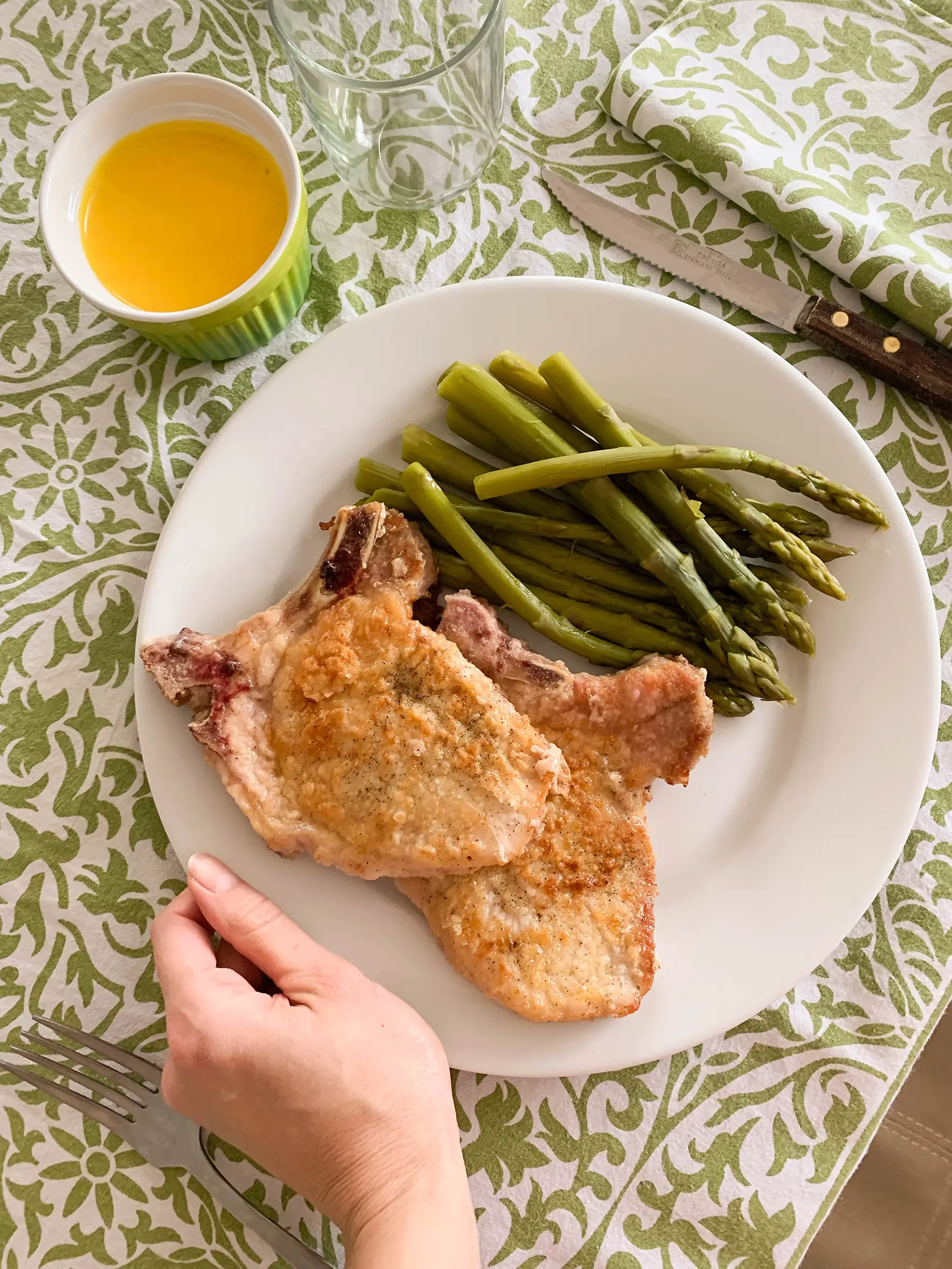 На гарнир к эскалопам из свинины я подаю отваренную спаржу (как на финальном фото к этому рецепту) с домашним майонезом. Пальчики оближешь!